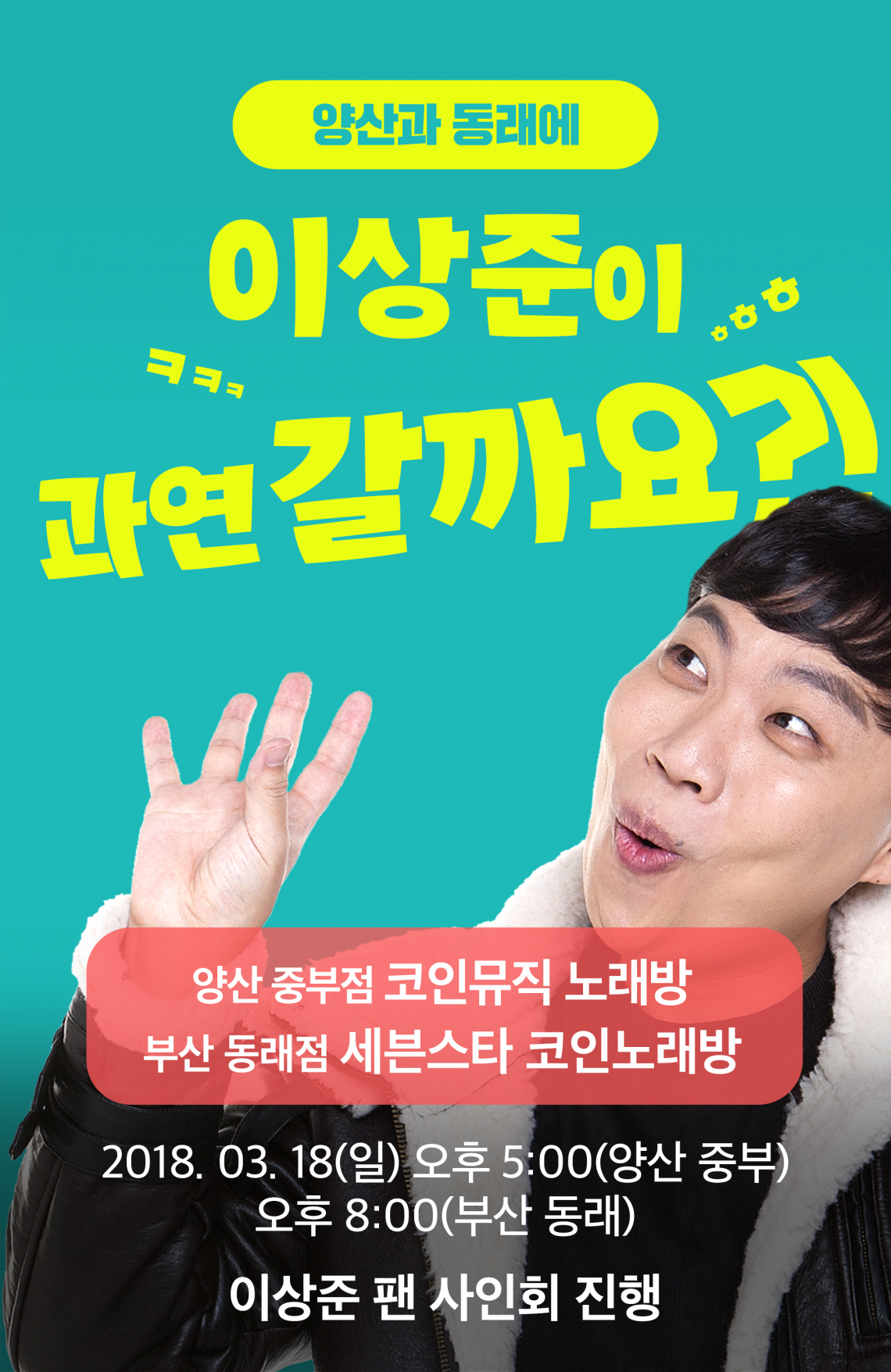 엠박스 양산 중부점, 부산 동래점, 에서 3월 18일(일) 개그맨 이상준씨 팬사인회가 진행 됩니다!
