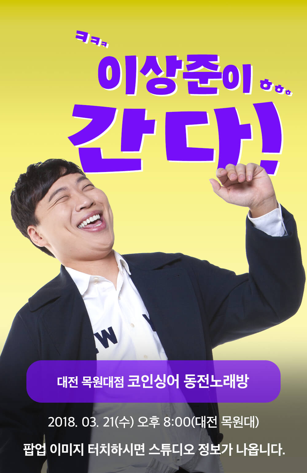 3월 21일(수) 개그맨 이상준씨 팬사인회 페이지 정보 작성자 엠박스 작성일18-03-19 13:20 조회345회 댓글0건 다음글 목록 본문 엠박스 대전 목원대점, 에서 3월 21일(수) 개그맨 이상준씨 팬사인회가 진행 됩니다!직접 이상준씨도 만나고 사인도 받고, 엠박스 스튜디오도 이용해보세요~ [지도위치 확인]